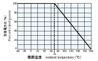在環(huán)境溫度70°C以上使用時,應按照左圖負荷特性曲線,減小額定功率。